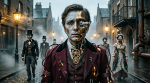 They walked in perfect unison, these things that had once been people. Their limbs moved with jerky precision, joints replaced with ball-and-socket brass fittings. Some still wore tattered remnants of their clothes, a businessman’s suit, a maid’s dress, a child’s frock. But beneath the fabric, the truth was visible. Exposed clockwork. Glowing filaments where nerves should be. Eyes that reflected light like polished mirrors.