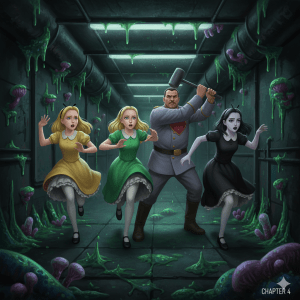 The three Alices, having each witnessed a different facet of Wonderland’s corruption and Mad Mr. Viscous’s destructive power, knew their fragmented quest had truly begun. They plunged into the hidden passage, leaving behind the cacophony of the factory floor, the bewildered workers, and the unsettling whispers of the industrial worm.