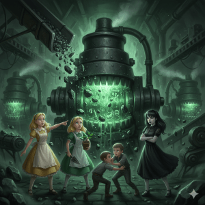 They had not landed in a new section of Wonderland. They had landed in Mad Mr. Viscous’s Industrial Wasteland, a realm where wonder was being systematically extracted, processed, and burned away. And in the distance, a faint, rhythmic thump-thump-thump echoed, like a giant, metal heart beating a funeral dirge for a dying world.