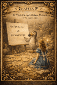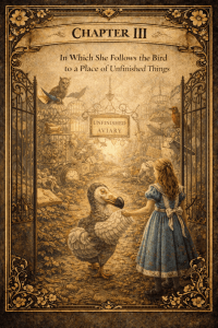 When a second Dodo appears, insisting he has always been there, Wonderland begins to misbehave in subtle and alarming ways. Paths hesitate. Endings loosen. And Alice, who remembers only one Dodo very clearly, finds herself drawn into an Aviary where unfinished things are kept neatly out of sight.