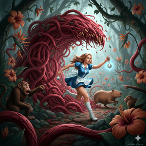 Alice looked at the confused monkeys, then at the single, frantic Capybara. She glanced down at the Locket of Logic in her hand, which emitted a steady, cool hum. This was the final, defining riddle: how to use logic to escape an illogical realm.