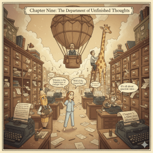 Everyone in the department had started something and never quite completed it. A man was painting a giraffe that stopped at the knees. A cat was writing a novel about sandwiches but kept getting distracted by the smell of tuna.