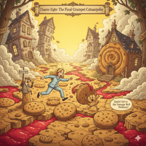“It’s the Great Crumpet Catastrophe of Crumbly-Crumpton!” shouted a nearby weasel dressed as a weather forecaster. “This happens every eleven dreams!”