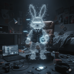 The rabbit turned. It had no eyes, only two glowing “Loading” icons where its pupils should be.