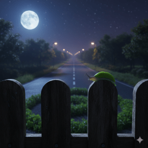 Sluggy began his journey at dawn, while the dew still clung to the hostas like liquid diamonds. His goal: The Great Wooden Gate, a towering monolith that promised a world beyond the rosebushes.