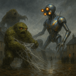 As the first Goliath stomped into the village square, the slug-tractor took a defensive stance. It didn’t fire a ray or blast an energy beam. Instead, it extruded a silvery, taffy-like substance from its mouth-like orifice, which it began to weave into intricate, sticky nets. It then launched these nets with a sound like a soft fwoomp at the Goliaths.