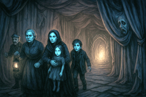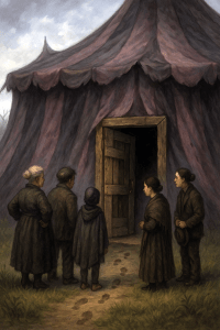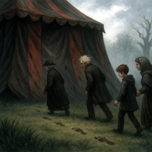 Mrs Prendergast pulled Seamus toward the far corridor. Patrick stood frozen for a moment, staring at the place where the shadowy tunnel stretched deeper into the tent.