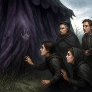 And far behind the tent, for just an instant, a shape unfolded tall and crooked, its silhouette bending in ways no body should bend.
