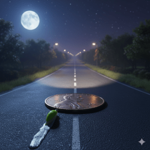 When Sluggy’s foot finally touched the damp, mossy earth on the far side of the road, the air changed. It was cooler here, smelling of decay, mushrooms, and mystery. He had survived the Black River.