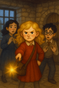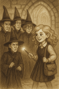 “They’re so stupid at that school,” she hissed under her breath. “They call it a school for mysticism and magic — more like a school for cowardice and compromise! Too frightened to offend the Muddles, too soft to wield real power.” Her eyes gleamed in the candlelight. “Well, I’ll show them. I’ll show everyone — even the Muddles — what I can do.”