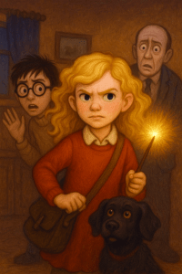 “Excuse me, please,” said Harry sweetly when Mrs Privet opened the door. “I’m your only niece. Would you be so kind as to put me up for a few days?”
