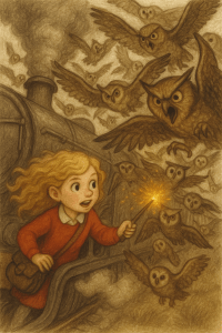 It had been several days since her escape from Hagswords, the boarding school for mysticism and magic, and she knew her freedom wouldn’t last forever. She had left behind a cunning decoy — a mannequin, enchanted to resemble her — but even the cleverest trick could not last indefinitely. Sooner or later, the teachers would realise their mistake and start searching.
