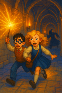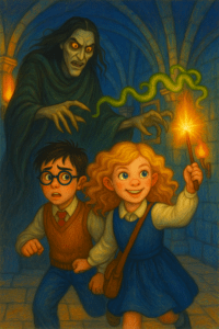 Harry followed, wand out. “Don’t say a word,” she breathed.