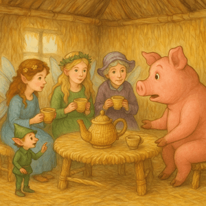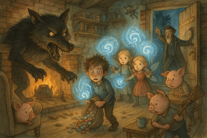 Outside, the wind grew gentle. Inside, the house felt very warm. Somewhere far off, a tired wolf trudged away from a ridge and decided that pigs were not worth the trouble. And Fairytale Land turned a page and settled into a new ending that still felt very much like the old one, only kinder.