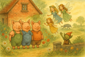 The third little pig opened his brick door a crack, saw his brothers, and pulled them inside with a firm nod. “You are safe here,” he said. “Bricks do not listen to wolves.”